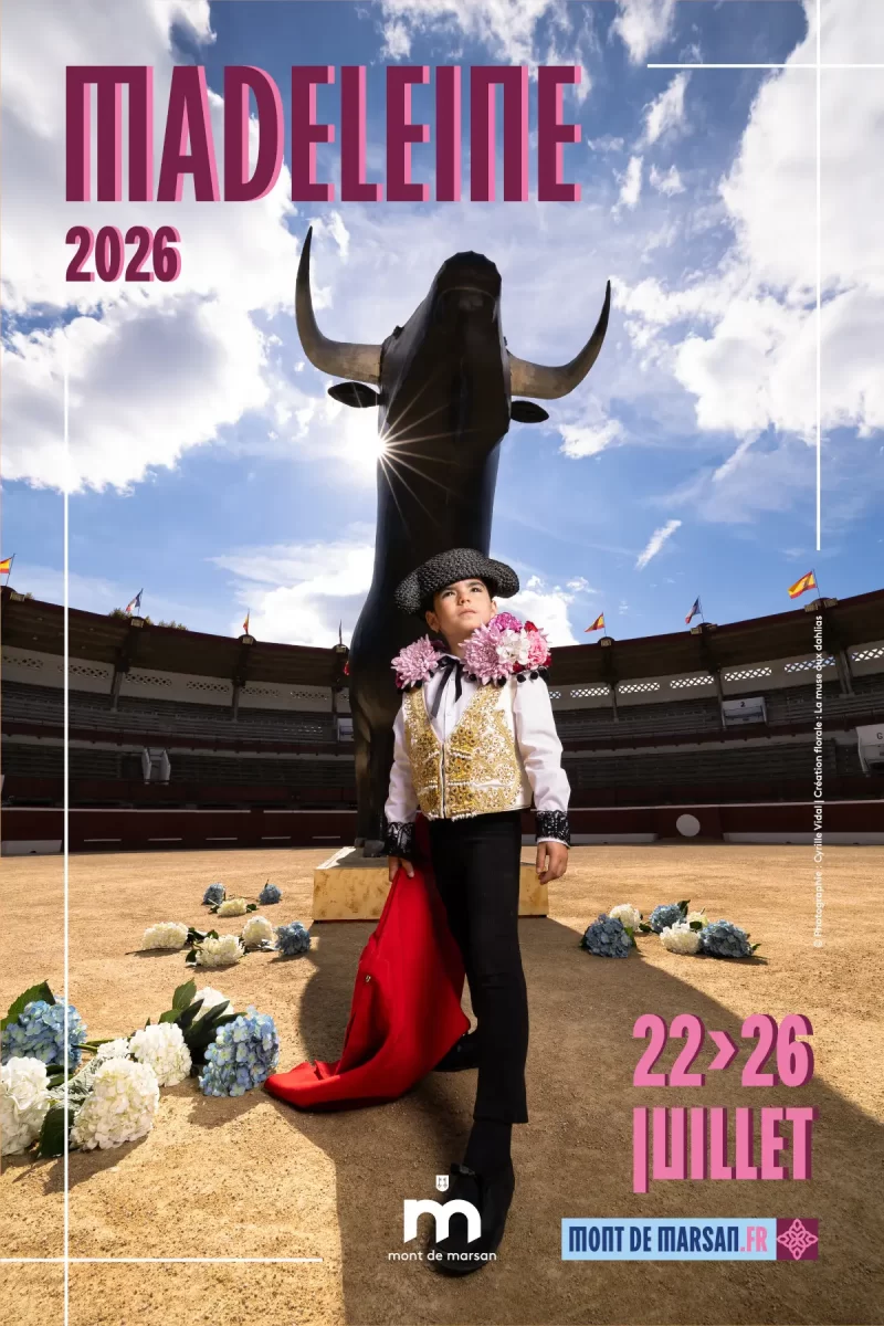 A sa lecture, 16 personnalités, alertées par la FLAC, s’indignent et demandent le remplacement du visuel de cette affiche représentant une fillette affublée d’un habit de torero devant un taureau de corrida. https ://www.montdemarsan.fr/actualites/laffiche-2026-devoilee/